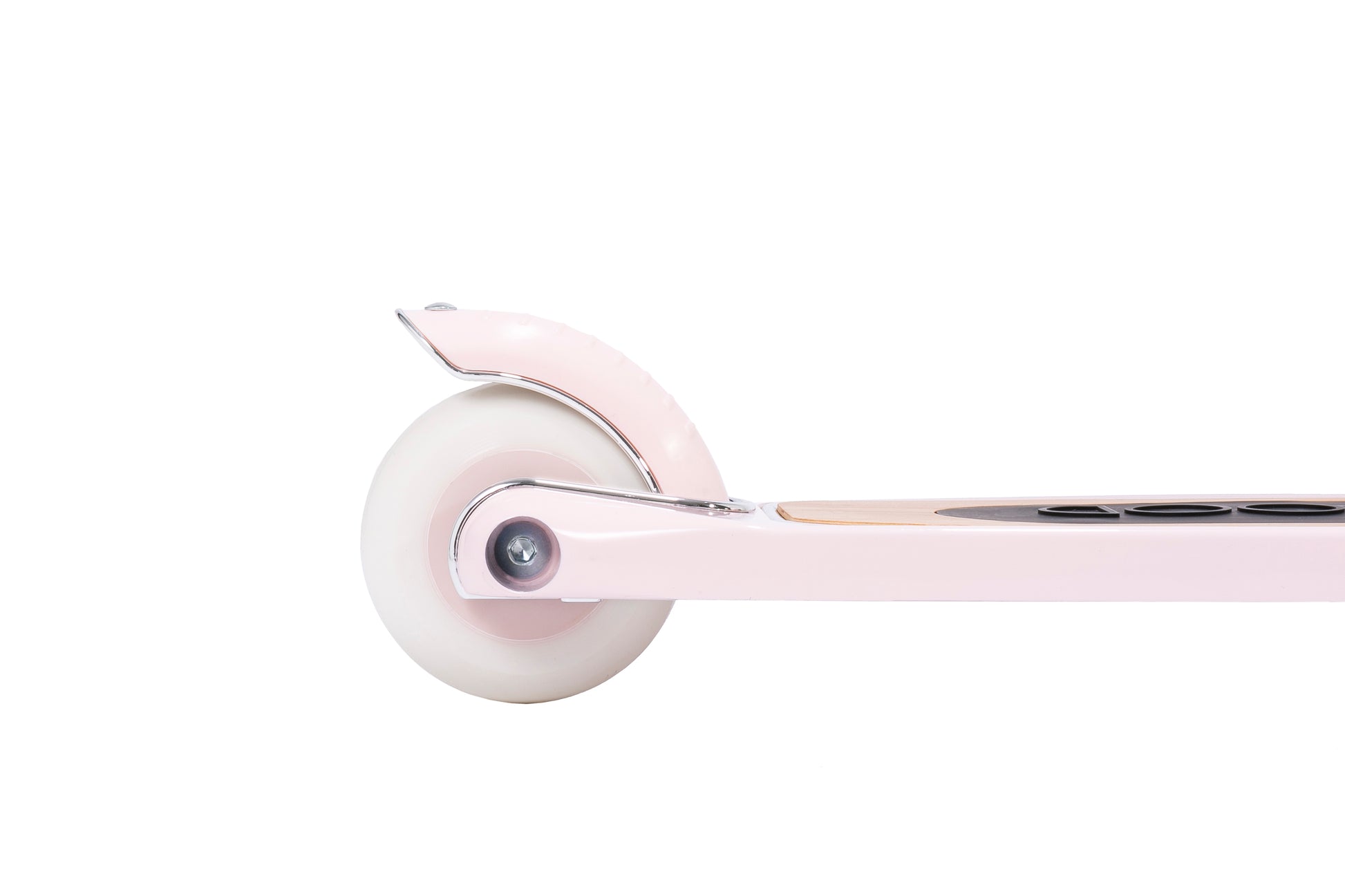 Le guidon en forme de T est réglable sur trois hauteurs (70, 75 et 80 cm), ce qui permet à la trottinette d’accompagner la croissance de l’enfant. Les poignées en caoutchouc garantissent une bonne prise en main, tandis que le plateau en bois de chêne avec bande antidérapante assure une position stable et confortable pendant la conduite.