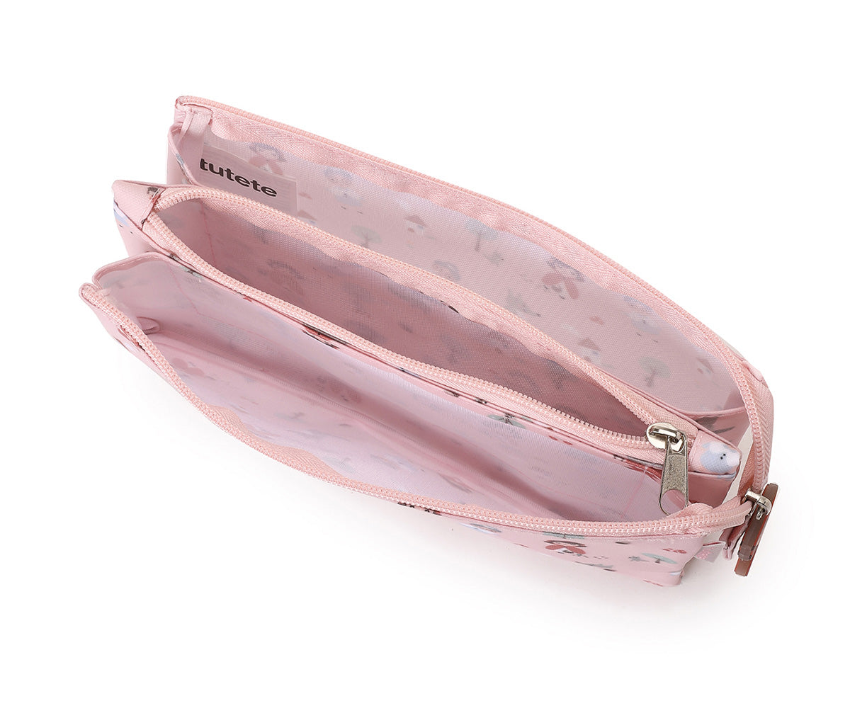 Dotée d’une fermeture éclair principale, elle s’ouvre sur trois compartiments intérieurs, dont un central avec sa propre fermeture pour les petits objets. La languette en silicone est facile à manipuler pour les petites mains.